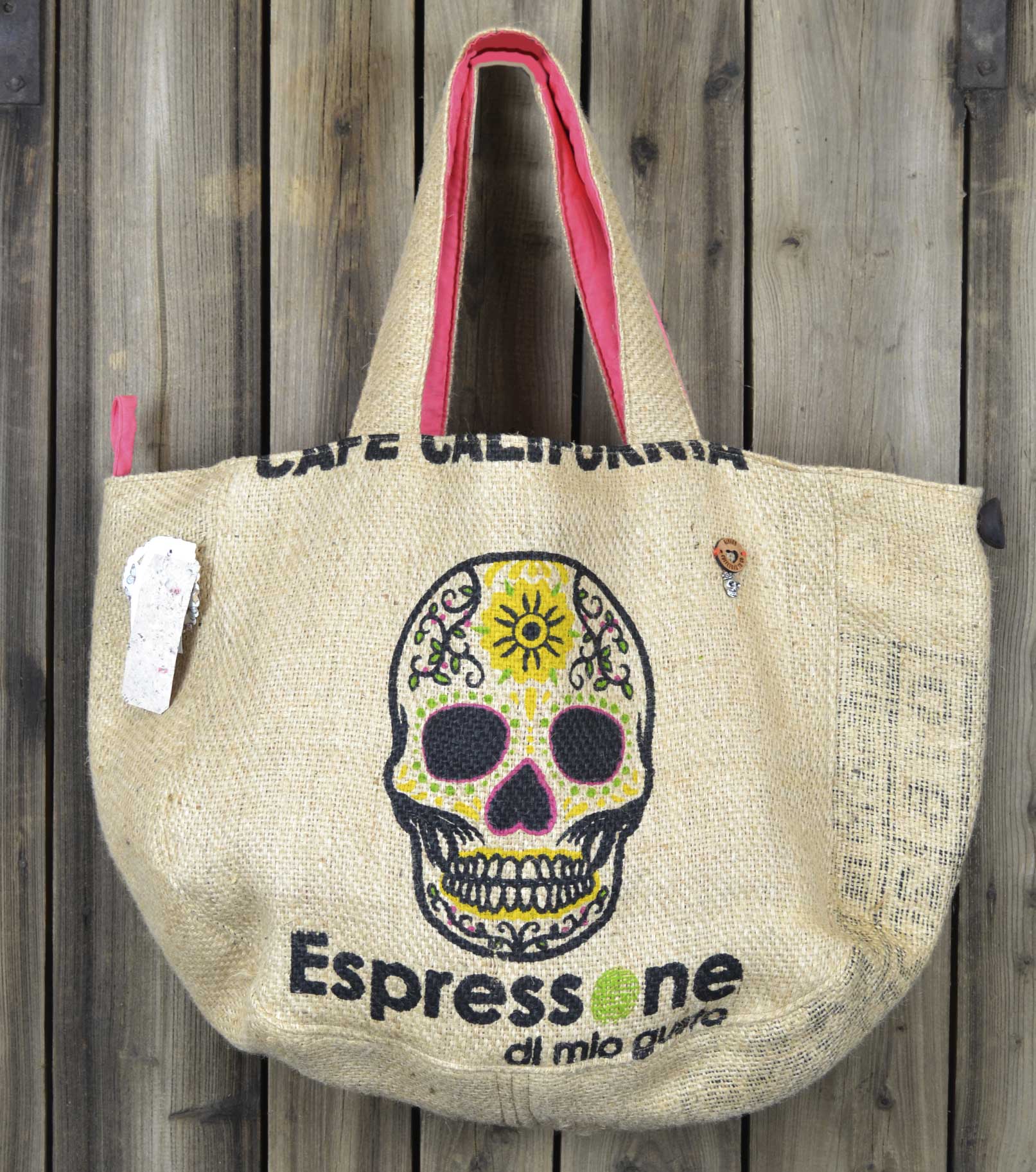 Unsere Strandtaschen werden aus Kaffeesäcken und antikem Leinenstoff/antiker Tafelwäsche gefertigt. Finde deine Strandtasche – nachhaltig produziert.