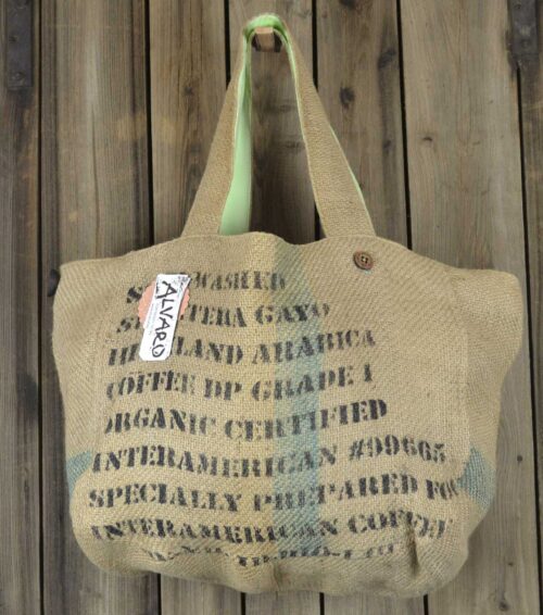 Unsere Strandtaschen werden aus Kaffeesäcken und antikem Leinenstoff/antiker Tafelwäsche gefertigt. Finde deine Strandtasche – nachhaltig produziert.