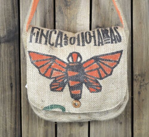 Unsere Umhängetaschen werden aus Kaffeesäcken und antikem Leinenstoff/antiker Tafelwäsche gefertigt. Finde deine Freddo oder Doppio – nachhaltig produziert.